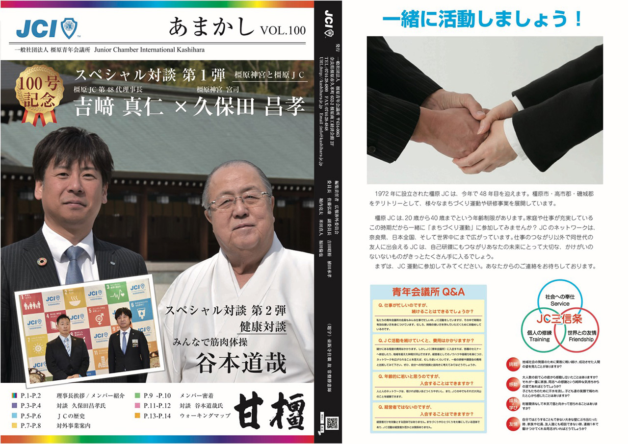 橿原青年会議所(橿原JC)の広報誌である甘橿が2020年という節目の年に、ついに記念すべき100号となりました。
