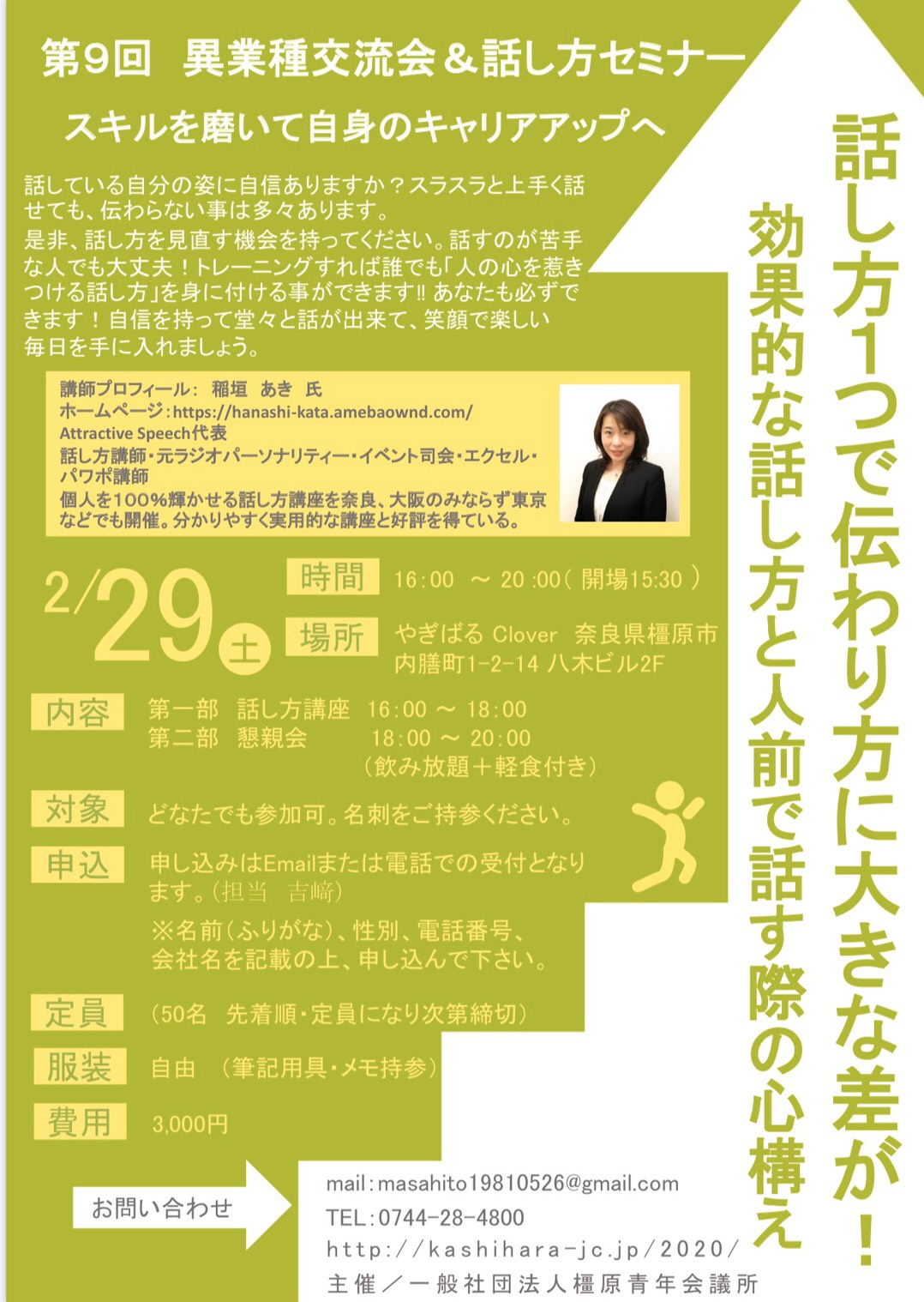 2月29日開催 第9回 異業種交流会&話し方セミナー